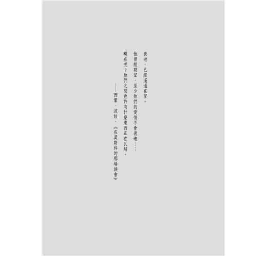 「把行李條給我,您去那兒坐著。」瑪夏口氣透著威嚴。妮可聽話照辦。她老了。跟安德烈在一起時,她經常會忘記這個事實,每每在自尊心被輕微刺痛時才又想起。見到瑪夏時,她心裡想:「美麗的年輕女人。」她記起自己三十歲的時候,聽見繼父這樣形容一位四十來歲的女人,當時她不由失笑。現在,她也來到這樣的年紀了,大多數人在她眼裡都是年輕人。她老了。她難以坦然接受這個事實(因之而生的驚愕與悲傷,正是她絕口不向安德烈吐露的寥寥數件事之一)。她思忖:「年紀大還是有些有利之處。」處於退休狀態,聽起來有點像一個人已經報廢。但想出門度假的時候隨時可以成行,無異是一大樂事;更確切地說,她隨時都在度假。她以前的同事正在悶熱的教室裡汗流浹背,開始做起出門度假的美夢,而她已經動身離開。她用目光搜尋安德烈的身影,他站在瑪夏身旁,處身於嘈雜的人群裡。在巴黎的時候,太多人有求於他,而他來者不拒。西班牙政治犯,被拘留的葡萄牙人,受迫害的以色列人,剛果、安哥拉、喀麥隆反抗軍,委內瑞拉、祕魯、哥倫比亞游擊隊員。還有她想不起的其他形形色色人物。他總是樂意竭盡所能助他們一臂之力。參與會議、起草宣言、召開集會、散發傳單、出任代表——他答應各種各樣的任務。他隸屬於許多的團體、組織。到了這裡,不再會有央求他幫忙的人。瑪夏是他們唯一認識的人。除了一同觀光遊覽,他們沒有其他事要做:她喜歡跟他一起探索未知、一起發現事物,這樣一來,通常在日常例行作息的幸福裡停滯的時間,得以再次流動,帶來源源不絕的新鮮經驗。她站起身。她多希望已經身處街頭,站在克里姆林宮城牆下。她已經忘了在這個國家的等待時間可能會多麼漫長。