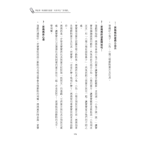 所以,我才會把這五年跟寶寶互動過的一些遊戲整理出來,跟諸位新手媽媽分享,如果妳還不知如何跟自己的孩子互動,不知道怎麼讓孩子變得積極樂觀的話,不妨就拿去一試吧!
