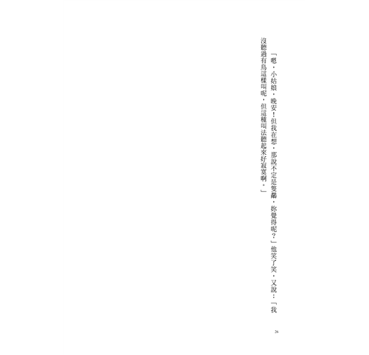 「啊!小姑娘,妳來啦!」佩格先生抬頭看著她說。「妳長大啦!是個大姑娘了。蘇珊,妳說是不是?」