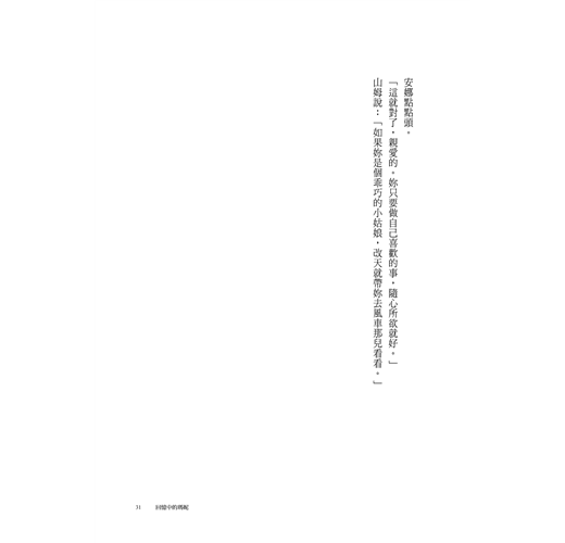 可是安娜並不想參加,再也不想參加了。她心裡很清楚,卻沒辦法向普瑞斯頓太太解釋,那些派對呀、好朋友呀、茶會呀,對別人來說是好東西,因為那些人都是「圈內人」,在一個神奇的透明圈圈裡。而安娜在那個圈圈外,所以那些事和她一點關係也沒有,就這麼簡單。