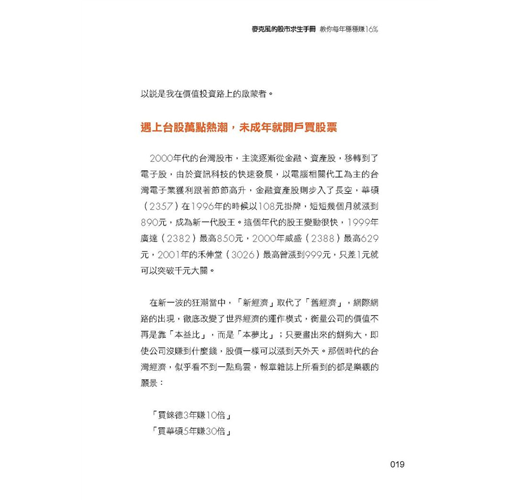 麥克風以價值投資為原則,不追逐市場的熱門股,而是分散投資股價被低估的冷門公司,低檔買進領股息,股價漲高後賣出。本書將詳細介紹麥克風的選股原則、進出場標準,讓一般上班族也能複製他的投資術。