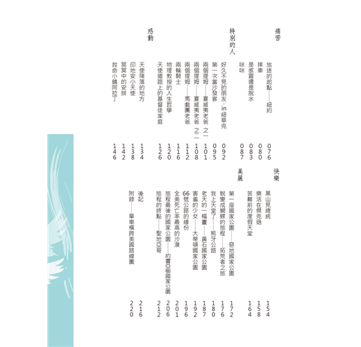 至今我仍然不相信我真的完成了,花了108天,靠著自己的雙腳,從大西洋騎到太平洋了,雖然我不是唯一騎腳踏車橫跨美國的人,但希望這本書,除了可以讓大家欣賞到旅途中美麗的風景和故事,也可以去感受我是如何學會面對我的人生,走出人生的黑暗面。