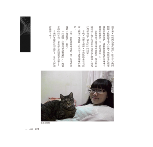 母親是小腦萎縮的患者,這也意味著我也是最佳的基因帶原候選人,醫生告訴過我,也許我會發病,也許我不會,這讓我的未來充滿了困惑和無奈;母親從發病到離開我們,前前後後歷經十五年的光陰,她是一位慈母,總是在背後默默地支持我的每一個決定,包括當初我堅持要離開家這件事,也只有她,在背後替我背書;家裡曾經面臨過卡債風波,房子被拍賣,父親沒有了工作;家裡曾經被斷水斷電,過著天黑要點蠟燭的日子,全家的經濟重擔,都仰賴姐姊。她放棄了學業,早早出社會開始打工賺錢,負擔了我求學期間的生活費還有家庭的基本開銷,她曾經告訴過我:「你就專心念書,等你有工作後,再換你來養我們吧。」
