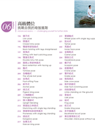 初、中、高級教程裡又分為坐姿、站姿、跪姿、蹲姿、臥姿練習,全書有以下練習: