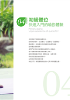 118個經典瑜珈體位分為預備課程、初級體位、中級體位和高級體位。