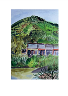 四、五月的時候,我常回老家探望,每次都順便帶紙筆回去練習寫生。在這之前,我從未好好地坐在老家面前畫畫,更沒想過為老家畫一張圖畫,總覺得有點亂亂的場景實在很難構成一幅畫。即使現在才想要重新面對這片風景,也只能草率而粗略地畫著。