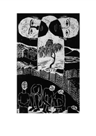 當我在木板上漸漸把山裡的細節刻清楚時,才發覺那片桂竹林已經變成雜樹林了。大概是很久沒人去清理竹林,以致於雜樹叢生長高,甚至悄悄地改變屋後這座小山的地貌。連相思樹都可以長在山頂上,搖擺的姿態好像可以呼風喚雨一般。此時山中雖然沒有一棵大樹,但是雜林亂長而沒人理會的小山也會變成一座難以接近的魔山。
