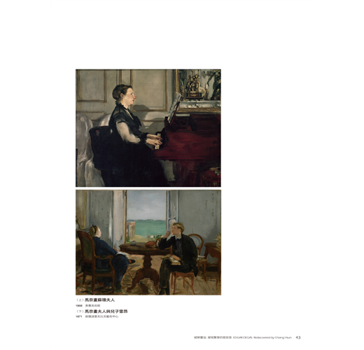 馬奈或許與蘇珊間有一般人不容易了解的情結,愛恨糾纏,不得而知。但是馬奈自己畫過很多幅蘇珊,就在一八六八年同一年,馬奈也畫過蘇珊彈琴的一幅畫像,畫中蘇珊穿黑紗長裙,姿態優雅。馬奈也畫過蘇珊與她的兒子雷昂,都完整沒有被破壞,唯獨如此割裂竇加畫裡自己的妻子,就更令人不解。