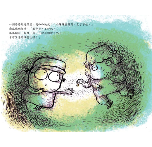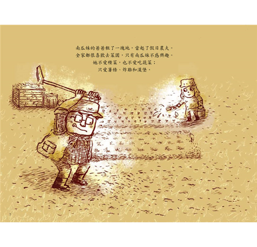 只愛薯條、炸雞的南瓜妹從不吃蔬菜,當然也不愛種菜。有一天,爸爸帶她到菜園學「有機」種植法,有個神祕的瓜婆婆給南瓜妹一粒神祕的種子,說:「種下它,它會帶來很大的驚喜!」