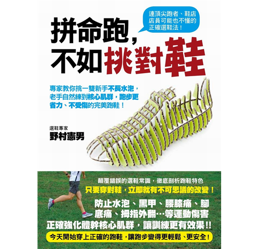 名人推薦: 讀了這本書後我很認同其中的內容,因此照著書中所說的方法買了鞋子。買回來的鞋子雖然無名指和小指有一點扺到鞋子,但在跑步時並不會在意,反而因為腳不會在鞋子中移動,跑步不會浪費多於體力,感覺很好。也試著買了同款但是大了0.5cm的鞋子,鞋子的合腳感完全不一樣,腳底的鞋墊也感覺稍微軟了一點。個人認為照著這本書選鞋子是正確的。 (讀者FUNFUN)