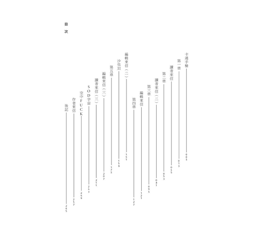 謝謝小說中所有露出縫隙的真實人物和事件,以及完全沒現身的小說家高翊峰。二○○七年夏天某日,混跡時尚雜誌多年的他來了一通電話,開啟我日後五年多在男性雜誌扮演介於魯賓醫生與荒島魯賓遜之間的角色。是他讓這本小說成為可能。
