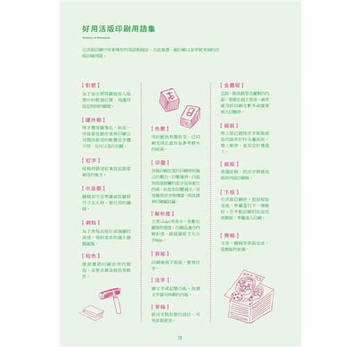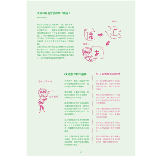 一面溫習活版印刷的特徵、架構與歷史,一面介紹作業流程與原稿作法。