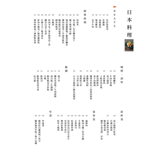 日本料理是我們「食」的基本。使用昆布與來自堅魚的柴魚高湯所做成的燉煮、可以快速做好的燒烤菜色,無論誰都喜歡的菜色。尤其是在「BEST 5」介紹的都是家常菜料理的代表作。詳細地記載了做法,就算第一次的人應該也可以順利地調理。近年漸漸地被忽略的煮魚,很適合配飯做法又簡單,只要有魚跟調味料就可以完成,希望大家一定要記起來。