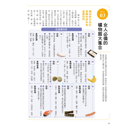 群、維生素C,礦物質分為巨量和微量礦物質,巨量礦物質有鈣、鎂、氯、磷、硫等;微量礦物質有鐵、銅、氟、鋅等,都是體內不可或缺的重要營養素。