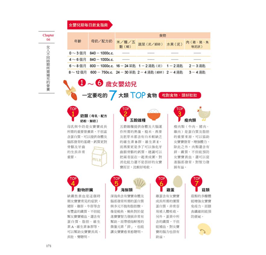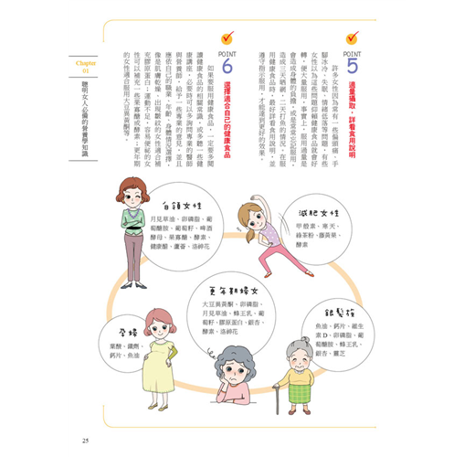 女人一生可以分為重要的8大階段,從嬰幼兒期、學齡期、青春期、成年期、懷孕期、熟女期、更年期到老年期,針對這8大階段提供最完整的飲食計畫和營養需求,讓你在不同時期,補充到正確的營養素!