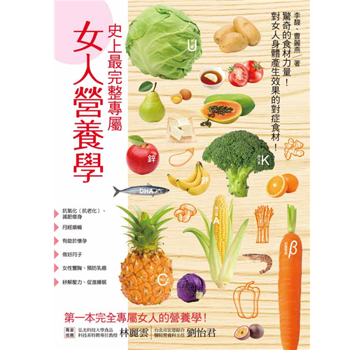 史上第一本專屬女人的營養學,從女人必備的營養學知識、正確飲食的觀念、帶給女人健康的超級食材、女人煩惱的10大病症與特殊族群營養素攝取、針對女人不同時期補充的營養,到女人必備的保健食品,每一個單元都使用了淺顯易懂的文字、圖表,並搭配彩色的圖片,讓讀者更容易理解,期盼可以帶給每位女性一輩子的健康人生。