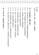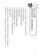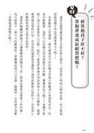 孩子的未來,從家庭教育開始。多數的家長以自己的經驗來教導孩子,從嘗試錯誤中學習與修正,然而孩子的成長只有一次,遇到經驗不足或是觀念錯誤將影響孩子一生的發展。本書詳列90個爸媽們最頭痛的教養課題,不需要再看一堆親子教養指南、網路文章,一次獲得完整解答。從眾說紛紜的說法導正正確的育兒觀念,日常生活基本訓練教會孩子自律負責的好習慣。耐心讀懂孩子的情緒,爸媽們以旁觀陪伴的立場提供孩子適時適齡的建議及照顧,幫助孩子健全的人格發展。