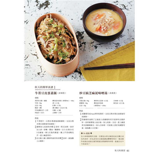*食譜的分量雖然是以1人份為基準,但是白米則以1合,或是其它難以1人份製作的食譜,則以容易製作的分量標示。