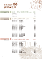 《你不知道的台灣古地圖》本書蒐錄數十幅重要、精采的台灣古地圖,每張地圖皆用簡明生動文字說明該圖的來龍去脈,提供研究台灣歷史的線索,也呈現出古代人們對台灣地理的理解;書中詳細說明古時測繪地圖的各種方式,以及不同年代的地圖內容特色。欣賞這些精緻呈現、超乎想像的各式各樣台灣古地圖,讓讀者從中體驗時空交錯的無比趣味。