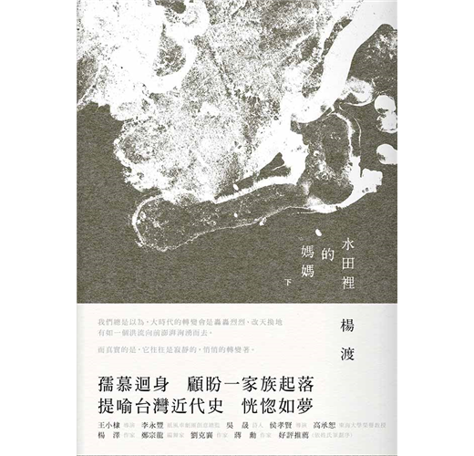 一如所有詩人都有猶疑不決、老是想再尋找更準確的字的毛病,從寫完初稿至今,我己作了幾次修改,書名也一度想改變。但最後,還是維持最初「水田裡的媽媽」。原因只有一個,回到初衷,回到創作初始的一念,回到一九七○年代初,媽媽從逃亡的水田中浮現泥濘的面容之際,命運彷彿己決定了方向。唯有回到最初,把故事寫出來,所有的命運之謎,才會找到自己的答案。
