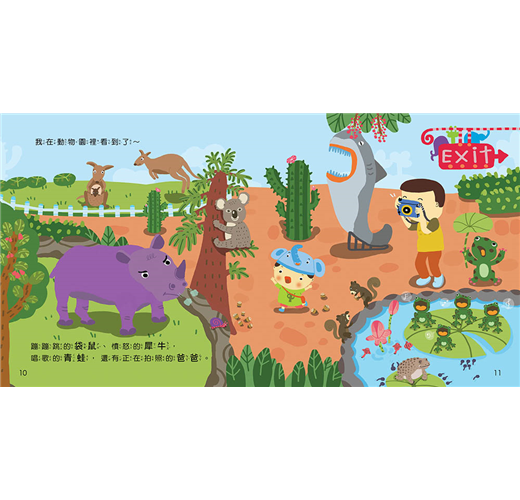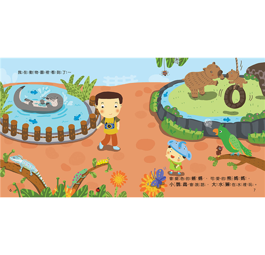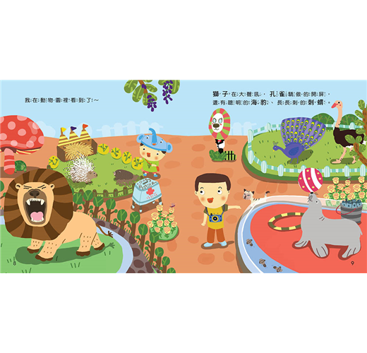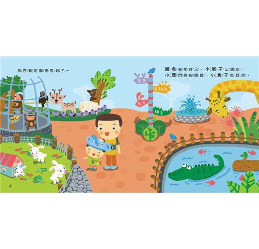 透過書中點出的動物特徵,除了可以訓練孩子學會觀察,還能認識動物,下次到動物園去時,孩子一定會開心的叫出各種動物的名字哦!
