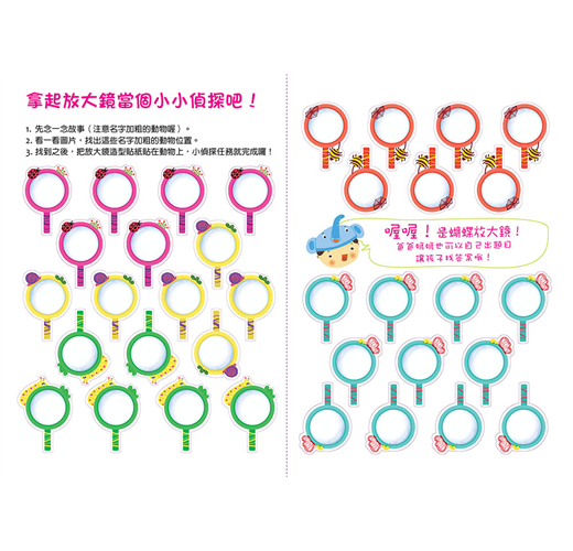 ‧培養觀察力:利用放大鏡造型貼紙,孩子便能像小偵探一樣帶著放大鏡去尋找答案。