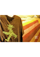 這件也是閃靈二〇〇八年的製作。不多說,想要展現大無畏(不是大無謂喔)的台客精神時,最宜穿著。背著「農用」的綠色書包,穿著「恁爸係台灣人」的綠色T恤,站在綠色山野裡,環保、獨立、身分認同,一次到位。