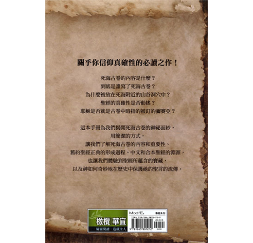 這本手冊為我們揭開死海古卷的神祕面紗,用簡潔的方式,讓我們了解死海古卷的內容和重要性、舊約聖經正典的形成過程、中文和合本聖經的淵源,也讓我們體驗到聖經所蘊含的寶藏,以及神如何奇妙地在歷史中保護祂的聖言的流傳。