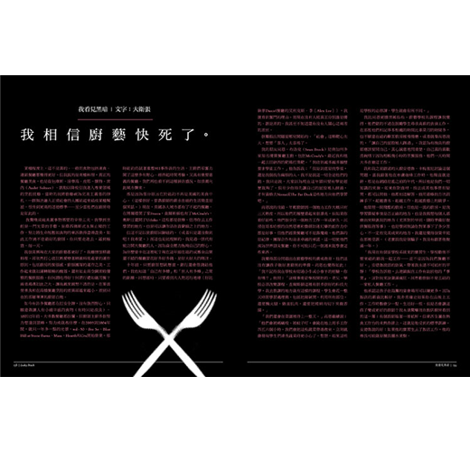 這本雜誌為所有年輕廚師而作。有炙手可熱的廚師新秀大爆餐廳內幕及業界趣事,更有波登和其他專家分享廚藝與美食潮流。——CM。