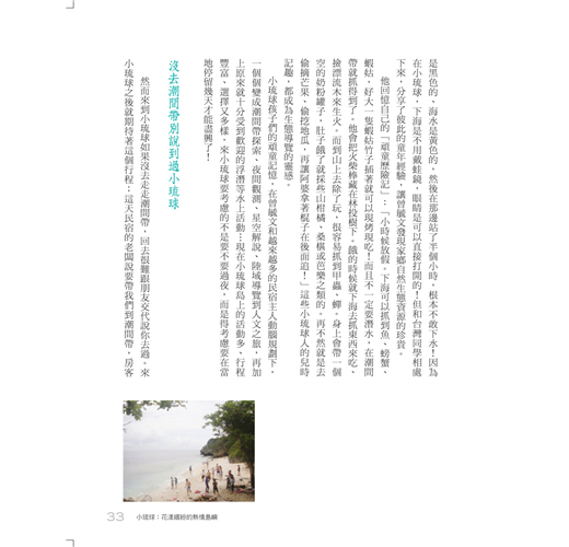 不要被制式印象所拘束,來到小琉球只看潮間帶、到東港只想到吃海鮮,這樣太辜負了你千里迢迢一趟來到東港、小琉球。作者洪浩唐在兩地往返蹲點,騎著機車趴趴走、渡輪晃來晃去,還去跟當地人盧很久,把正常規矩的玩法、想搞怪的玩法、放空的玩法、耍浪漫的玩法、飢餓時的玩法…全部寫出來啦~~