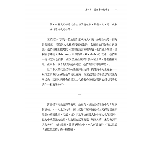 我在修讀馬大二年級的時候,曾立下一個志願,要在一年以內完成一本關於現代詩詮釋的專書。那一年,亦即1980年,我每天凌晨四點起床開始寫作,直到早上八點才吃早點趕到校園上課。上完課回來,晚上八點又再投入閱讀和寫作當中。經過幾個月奮鬥,《現代詩詮釋》一書的稿件宣告完成,並於一九八一年二月出版。這些書稿當中,其中四篇是關於溫任平詩歌的。首三篇屬實用批評,詮釋了溫任平的〈獵人〉、〈某新任議員〉和〈事件〉。另外一篇是比較長篇的論文,題為〈現代屈原的悲劇:論溫任平詩中的航行意象與流放意識〉。前三篇文章是短篇的詮釋文章,就沒有再收錄在這本書。