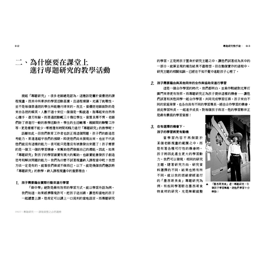 隨著十二年國教統整課程的逐步實施,現今孩子們所接受的教育,已經不再只是「老師說、學生做」這種被動式的學習方式;所需面對的評量,也不再侷限於「背多分」式的紙筆測驗。面對多元學習的第一步是,隨著所謂的專題研究作業日益增多,學生必須更早嘗試發展挑戰性十足的研究能力。其實,研究能力的發展和其他任何課程的學習,都一樣需要大人的引導與協助,我們不可能期待孩子在老師的一聲令下,就能在截止日期之前,交出一份像樣的研究報告。如果,我們不曾加以指導,又怎...
