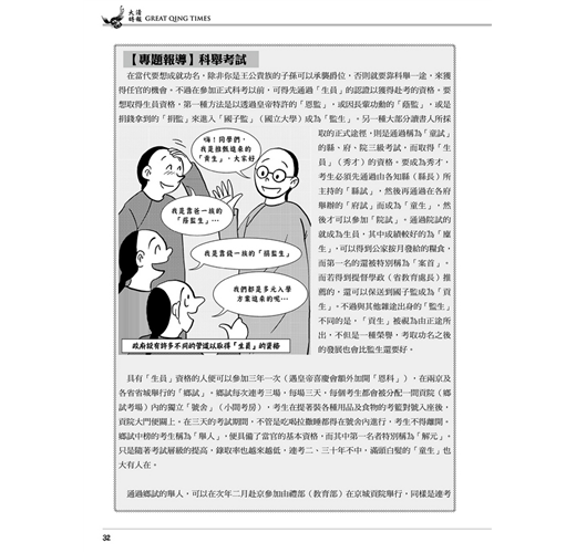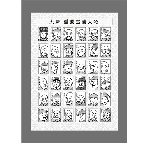 《大清時報》是「圖像編年史」系列中,繼《三國時報》、《戰國新聞》之後的創作,但由於要交代的事情太多也太重要,所以我將清朝二百多年的歷史事件,又分成「首部曲‧八旗建國」、「二部曲‧開創盛世」、「三部曲‧帝國哀歌」三部分來呈現。希望讀者們可以在這樣的安排下,以輕鬆的方式獲得樂趣與知識,以無痛的閱讀在朋友間晉升為歷史達人。謝謝游主編、美編,以及遠流的諸位前輩,在出版的過程中所提供的指導與協助。謝謝我的家人及身邊的朋友們,在創作的過程中所給予的靈感和包容。更謝謝正在翻閱這本書的讀者們,願意讓我的創作占去您一點點的美好時光。