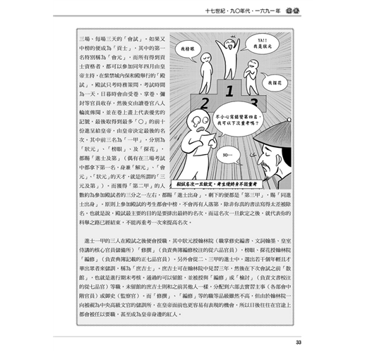 至於內文中年代的記法,則仍然維持「圖像編年史」系列的作法,採用皇帝年號與西元紀年並列的方式呈現。但若有涉及月、日的部分,為了與古籍相符,仍採用傳統史書中陰曆的標註,以免讀者產生混淆,此點若有造成不便之處,還請讀者見諒。在各代皇帝名字後面的廟號,其實是要等到人死了之後才會給的,但為了方便讀者在熟悉的傳統印象與本書角色之間切換,所以也特別以括號註記。此外,書中出現的職官名稱及地名,也都標註了等同現代常見的稱呼,以幫助讀者更容易的了解其意義。為了方便查考及索引,本書的最後也依年代製作了「新聞標題索引」,可以快速且輕鬆的找到想要搜尋的歷史事件。