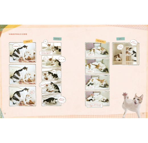 書中還穿插收錄了超Q、超爆笑的貓咪生活照及手繪圖,相信貓奴們在會心一笑之餘,一定也能產生百分之百的同感!趕快來找找,哪些也是你家貓貓時常展現的趣味百態吧!