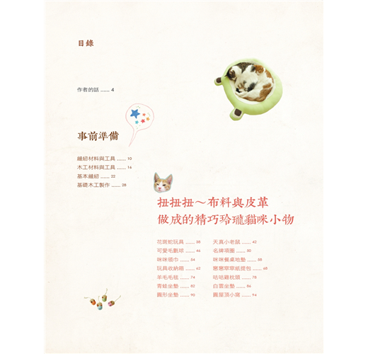 這是一本為了能替如同家人般的寵物貓製作手工品,並且與牠們一起共同分享手作樂趣的書;同時,我身為早一步進入手作世界的人,這是我替對於動手製作感到卻步的朋友,抱著開闢一條更簡單便利道路的心情來完成的一本書。