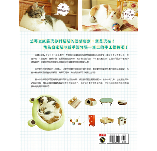 製作手工品並不是什麼艱難或是了不起的事,在寒冷冬天裡為了讓流浪貓可以度過寒冬,親手用紙箱或保麗龍蓋成小屋子的那些人們,在我眼中,擁有著最令人動容的手工藝術家的雙手。融入如此善心與精神的物品,你能說它不是手工品嗎?所謂的手工品不就是從這樣的「心」開始的嗎?本書介紹的縫紉物品及木頭打造的貓咪家具,即使沒有特殊高超的技巧,只要你對貓咪有著滿溢不絕的愛意,以及一點點的耐心,不管是誰都可以做出最棒的手工品。