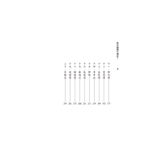 本輯共收入較重要、較精彩的傳奇二十篇,經校註董理外,另加上標點符號、辭、句注釋,並選譯十六篇,相信對愛好小說和初學者,可能有所裨益。