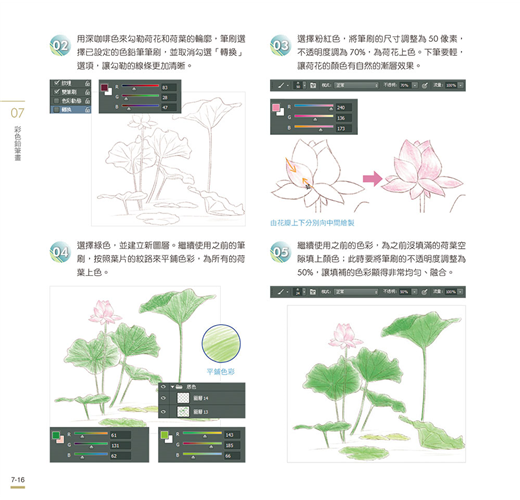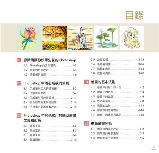 收錄大量的電腦手繪實例,且包含不同的繪圖風格,如簡筆畫、素描、色鉛筆、水粉、水彩和CG等,全方位介紹Photoshop手繪技法。