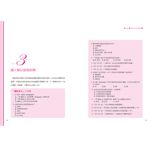 除了「三天向糖說Bye-bye法」外,其餘內容都是在幫助你嚴格遵守減重計劃,而且還會清楚解釋糖危害人體的科學及理論基礎,以及到底糖在人體內起什麼作用。