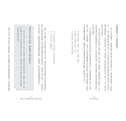 這些不快樂的描述有任何地方像你嗎?我認為有。這就是我寫本書的原因。因為你可能覺得筋疲力盡──不斷想控制未來,而且很不滿意。無論你如何努力,總是達不到目標,總是低於可能或應該做到的標準。我了解這些感受,因為我也經歷過。