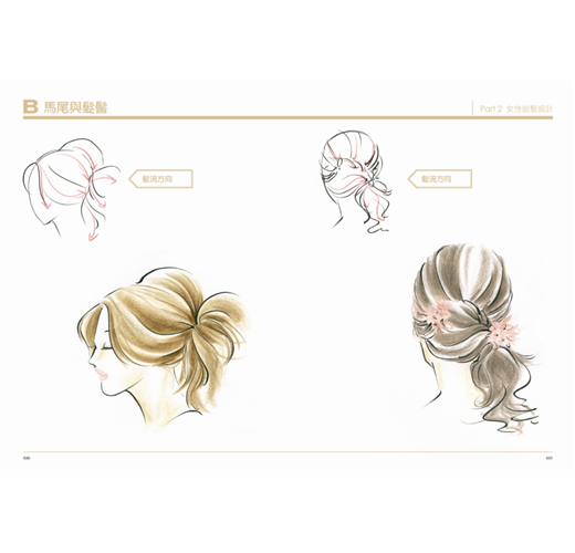 並針對瀏海、馬尾、髮髻等細節有更詳細的繪畫技巧說明,