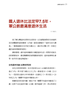 2.《遠見》國人退休生活調查 退休年齡比法定早7.5年,軍公教最滿意退休生活