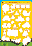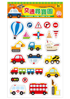 猜一猜~馬路上應該會出現哪些東西呢?把它們擺到馬路上去吧!別忘了把交通號誌也擺上去,交通才不會亂糟糟哦!還有~馬路背後有許多交通工具的影子,找一找分別是哪些吧!