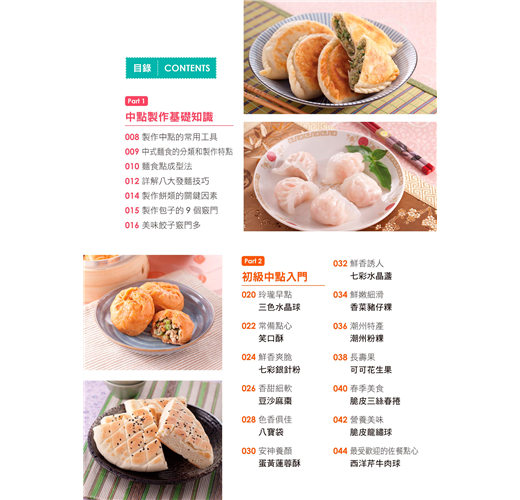 ◎中式點心看似過程繁瑣,按部就班就能做出豐富、鮮美的點心,各種新鮮花樣的鹹甜美食,只要用心絕對能輕鬆入手!