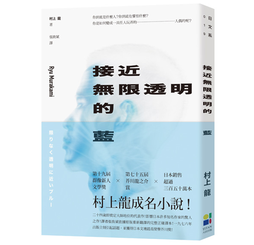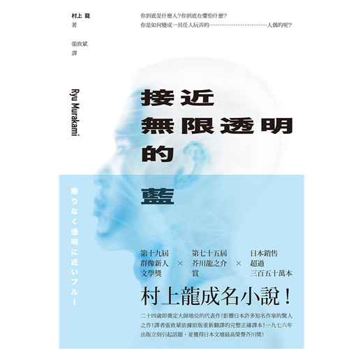 1976年就讀大學時,以描寫軍事基地城市年輕人行為的《接近無限透明的藍》獲得第19屆群像新人文學獎、第75屆芥川獎,成為史上第一位在學學生得獎的先例。本書在評審會上引起激烈討論,評審丹羽文雄、井上靖、吉行淳之介、中村光夫傾向支持,而永井龍男和瀧井孝作則極度反對,安岡章太郎投下半票,最後以4.5比2過半數的贊成票結果,讓村上龍獲獎。