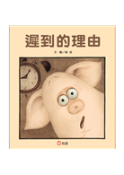 小豬飛快的跑到學校,卻在快到教室前的走廊停了下來。牠癱坐在走廊角落,忐忑的想過一個又一個理由──該學大象,跟老師說是因為擤鼻涕擤太久了嗎?還是跟鱷魚一樣,刷牙刷太久了?一幕幕的內心小劇場,在小豬的腦海裡演過一遍又一遍……