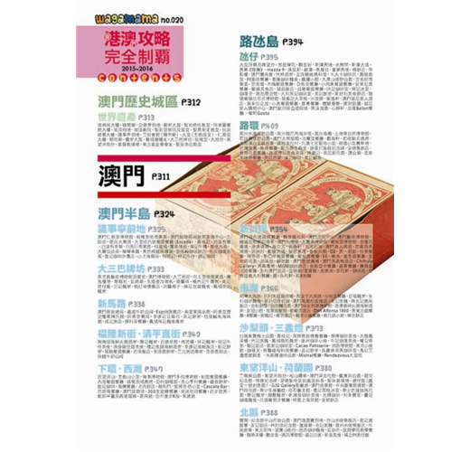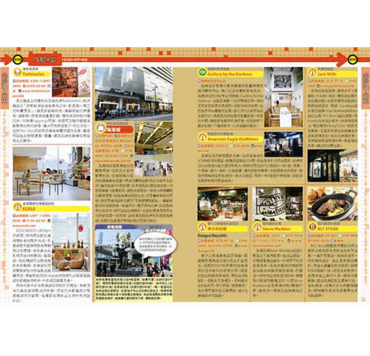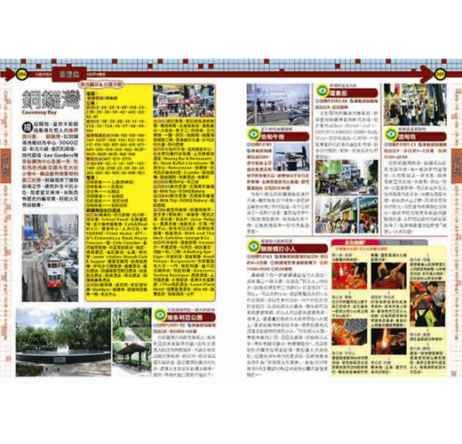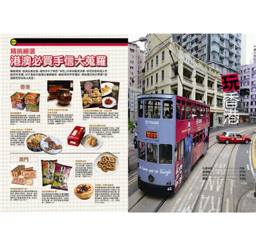 有了懷舊風情,新地標當然也不能少。本書收錄港澳最新地標,如:香港銅鑼灣Lee Gardens時尚購物區,澳門的金沙城中心等等,也包含近年崛起的文化創意勢力,文創小舖、生活雜貨等通通都有,帶領讀者逛逛香港中環PMQ元創方、上環POHO區,給你最新鮮的港澳體驗。