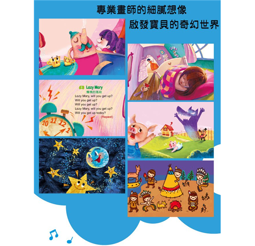 6. 可愛歌曲繪本:搭配可愛繪本設計,根據歌詞繪製出情節,一邊歡唱進入情境,並附上注音,幼幼兒童也可以朗朗上口。