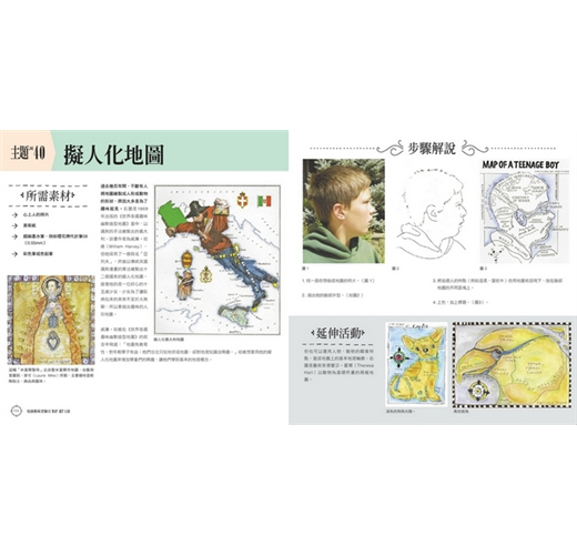 不論你的年紀大小,不管你先前的藝術經驗多寡,只要按著書中的步驟,就可以做出創意十足的地圖藝術作品。接下來,更能發揮自己的新點子,不斷提升個人作品的層次。